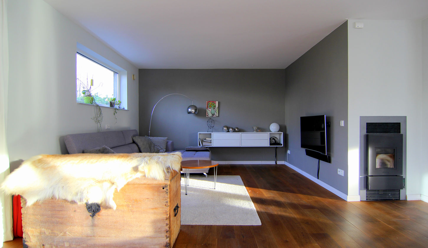 Die Wand vom Flur zu diesem Zimmer wurde erst nachträglich eingesetzt und könnte wieder entfernt werden, sodass eine lichtdurchflutete Galerie entstehen würde.